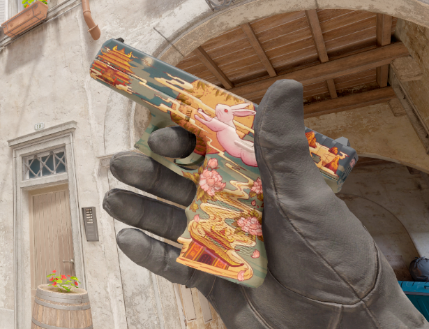 A mysterious and stylish pistol skin featuring a black anime-style rabbit. The mix of red and black creates a sense of danger and speed — a visual metaphor for fast rounds and sharp reflexes.