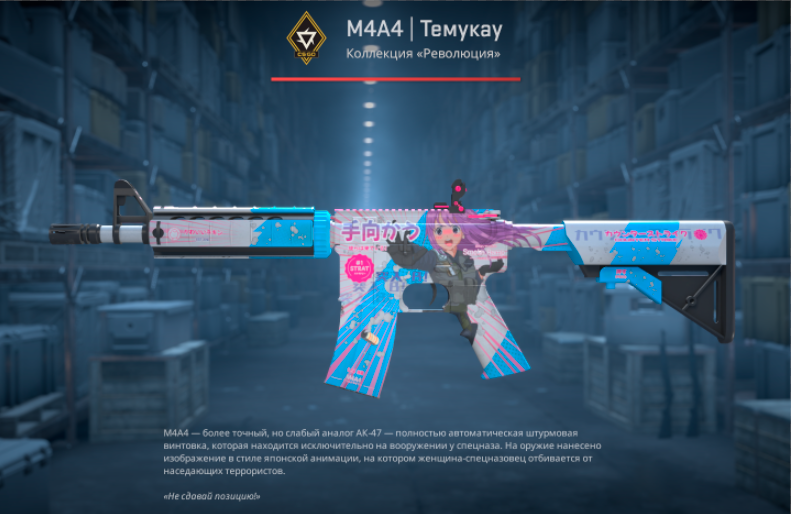 “Player Two” transforms your M4A1-S into a vibrant anime masterpiece ready for battle.