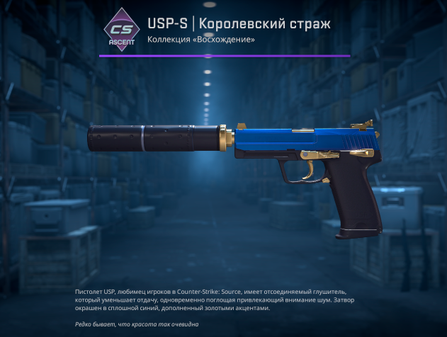 Aristocratic Royal Guard resembles a ceremonial weapon. Polished metal, gilding, and elegance — everything about it speaks of status and attention to detail.