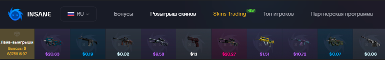 Insane is a popular gaming website where users can earn new skins for CS2, Dota 2, and Rust by participating in exciting modes and activities. The platform combines gambling, bonus programs, and its own trading system, making it one of the most engaging platforms for players of all levels — from beginners to professionals.