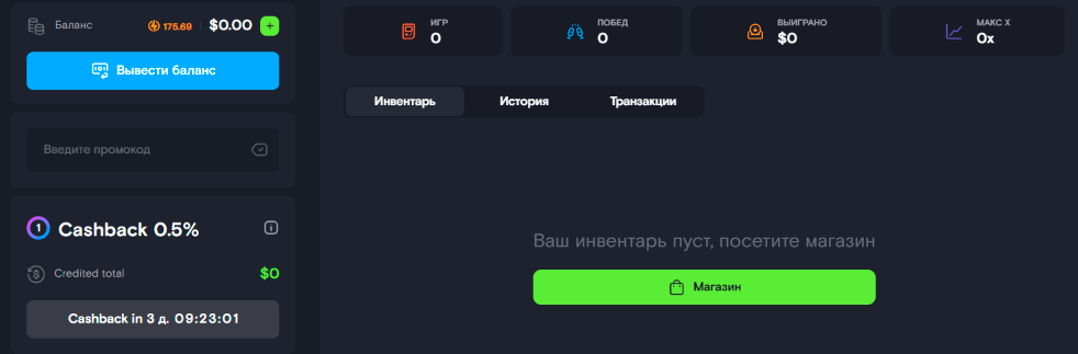 If you buy a skin with this balance, it becomes “locked.” To unlock it for withdrawal, you must play 15 rounds in any mode (except for Crash+, MINES, and PLINKO) within 72 hours.